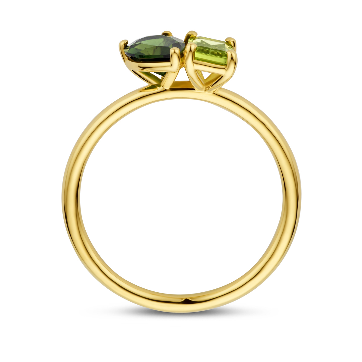 De 14 karaats Ring toi-et-moi peridot en groene toermalijn is een prachtige gouden ring met een groene toermalijn in peervormige slijpvorm. Met zijn schitterende glans en verfijnde vorm is deze ring perfect voor elke gelegenheid. Het beste te dragen om een verfijnde en elegante uitstraling te accentueren, vooral bij formele bijeenkomsten.