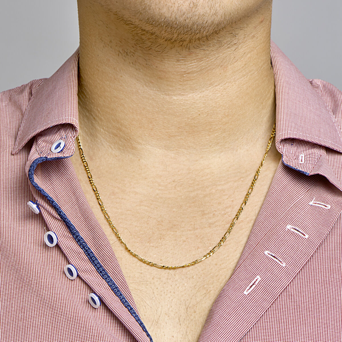 Deze prachtige 14k Figaro ketting is gemaakt van hoogwaardig geelgoud en heeft een elegante en tijdloze uitstraling. De ketting heeft een uniek Figaro-design met afwisselende schakels en een stevige karabijnsluiting. Deze ketting is perfect om op zichzelf te dragen als statement stuk, of te combineren met andere kettingen voor een trendy gelaagde look. Maak je outfit compleet met deze stijlvolle ketting!