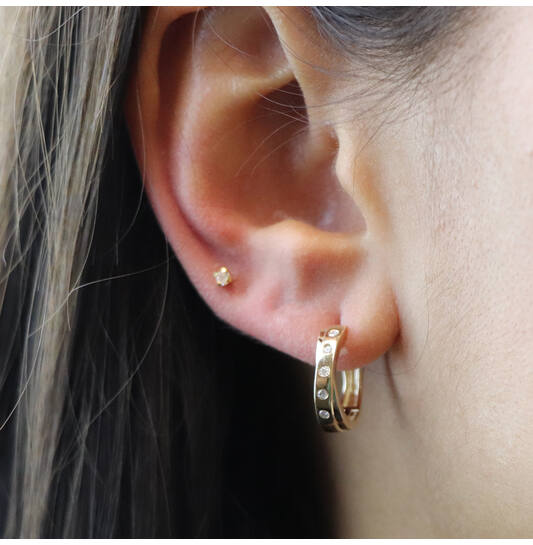 De 14kr creool met diamant straalt elegantie uit met zijn verfijnde ontwerp en sprankelende diamanten.