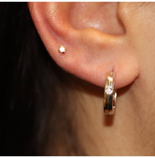 Deze 14k gouden klapoorringen met diamant stralen elegantie uit. Perfect voor elke gelegenheid, benadrukken ze de schoonheid van de drager. Draag ze als statement-stuk met opgestoken haar of combineer ze met een chique outfit voor een stijlvolle look. Een prachtige toevoeging aan elke sieradencollectie.
