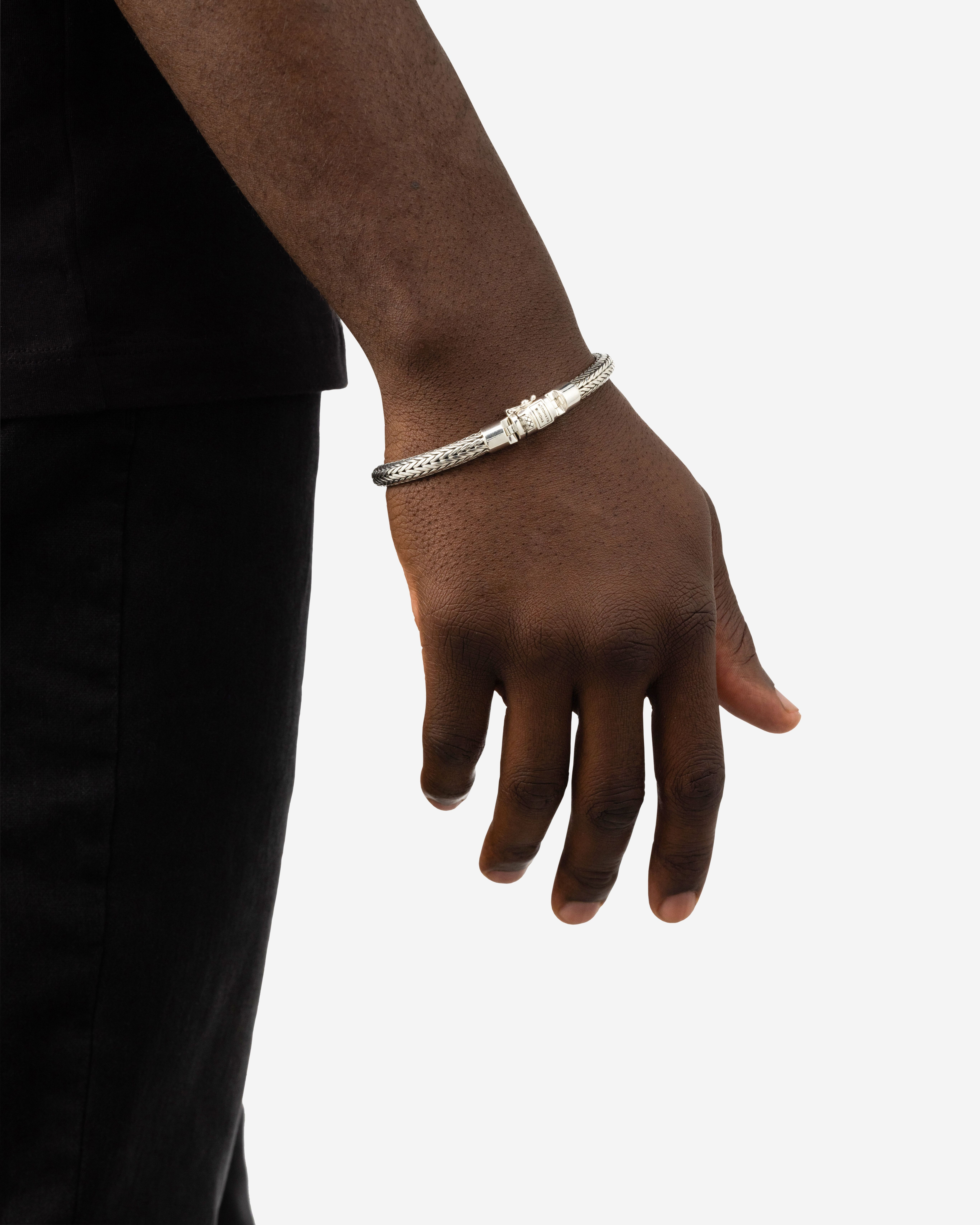 De Buddha to Buddha - Armband Ellen XS, modelnummer 001K011500106, is een stijlvolle zilveren fantasiearmband van 925 sterling zilver. Het armband heeft een afmeting van 4,1 x 6 cm. Deze armband is niet nikkelvrij en niet glanzend. Perfect om subtiel te dragen bij zowel casual als chique outfits. Armbandmaat: 160 mm.