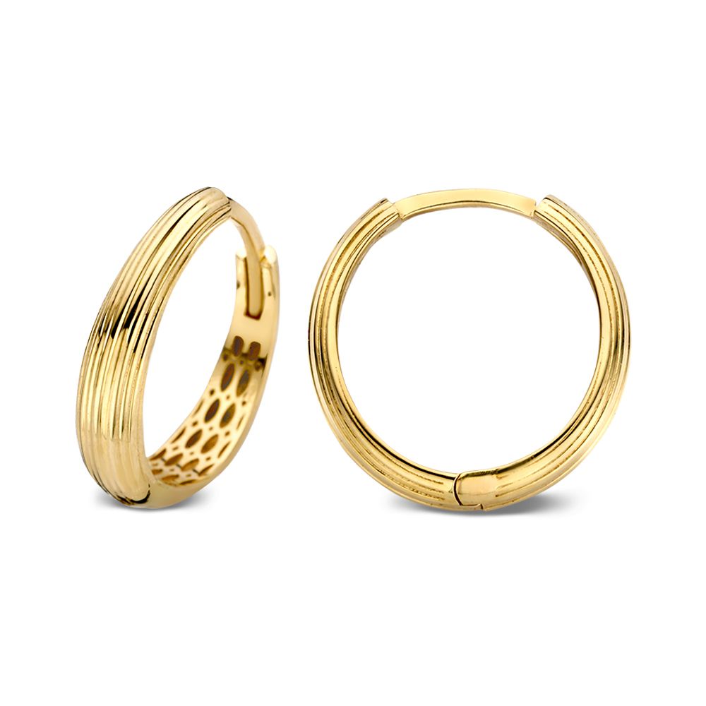 14 Karaat Geelgouden oorringen met speelse bewerking.