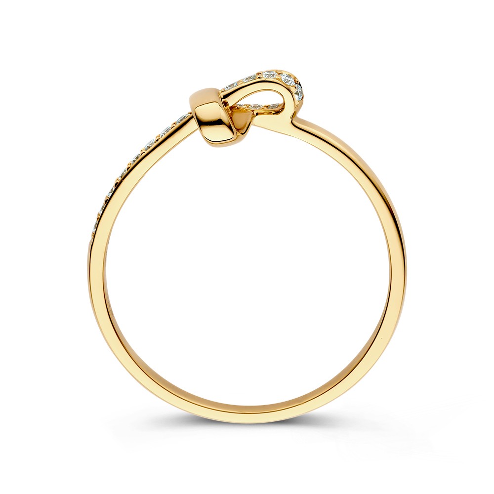 Deze elegante 14-karaats geelgouden ring straalt liefde en verfijning uit. Het subtiele hartjesontwerp in het midden maakt het een romantisch sieraad, perfect als cadeau of symbool van verbondenheid. De briljant geslepen diamant van 0,11 karaat zorgt voor een schitterende finishing touch. Tijdloos, stijlvol en met vakmanschap gemaakt.