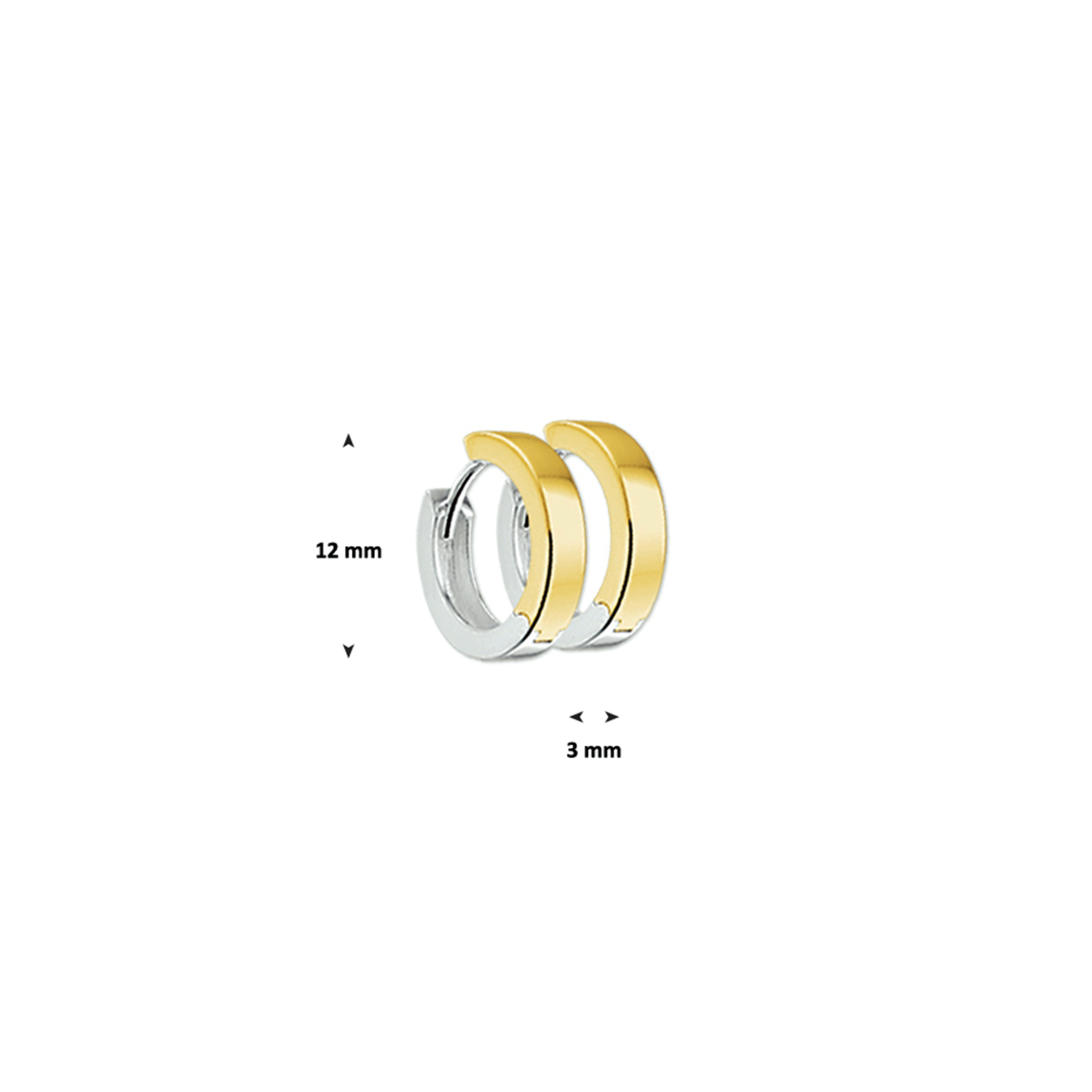Bicolor wit- en geelgouden klapoorringen gegoten met een vlakke buis.