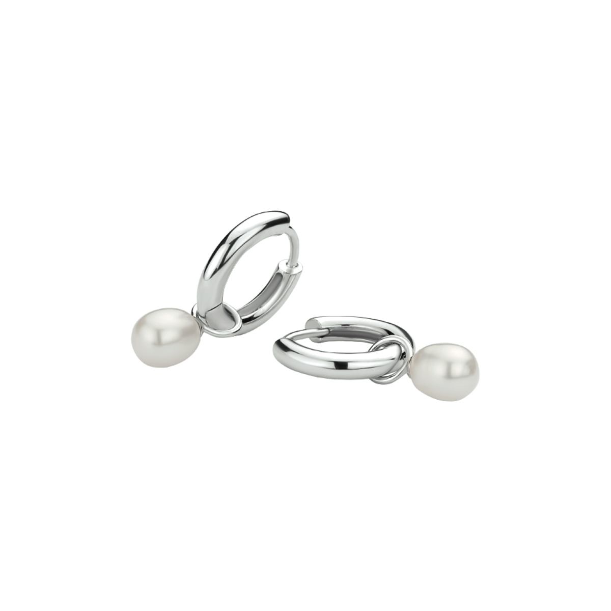 De Zilveren Klapoorringen met parel, zijn prachtige creolen van rhodiumgeplateerd 925 sterlingzilver. Deze ovale oorbellen hebben een witte parel als edelsteen en glanzen mooi. Met een diameter van 15 mm dragen ze elegant en verfijnd. Perfect voor zowel dagelijks gebruik als speciale gelegenheden.
