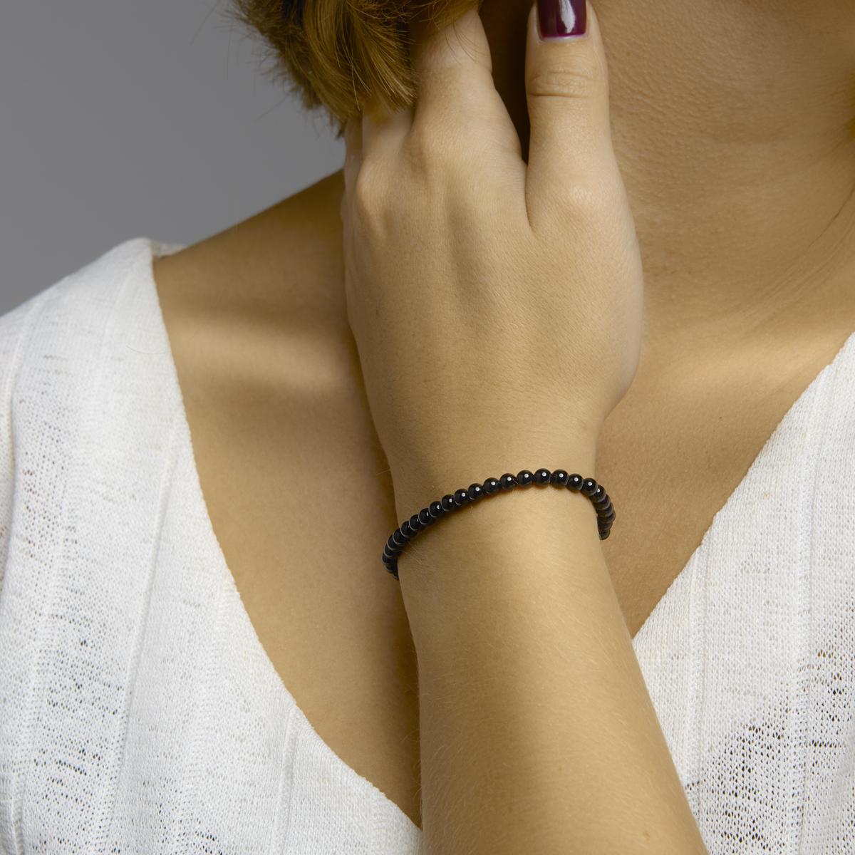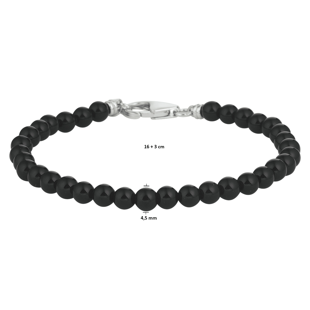 De kralenarmband Onyx is een elegante armband. Gemaakt van rhodium plated materiaal, met een breedte van 4,5 mm. De zwarte Onyx edelstenen geven een glanzende uitstraling. Perfect te combineren met zowel casual als formele outfits voor een verfijnde look.