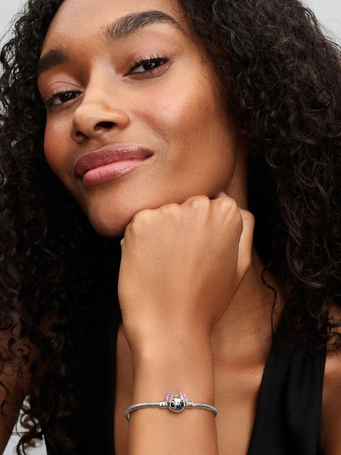 Vier de magie van Disney met de Disney's Stitch Snake Chain Armband, met een sterlingzilveren ketting en details van paars, zwart en blauw emaille. De armband symboliseert de onwaarschijnlijke band tussen Stitch en zijn vrienden.