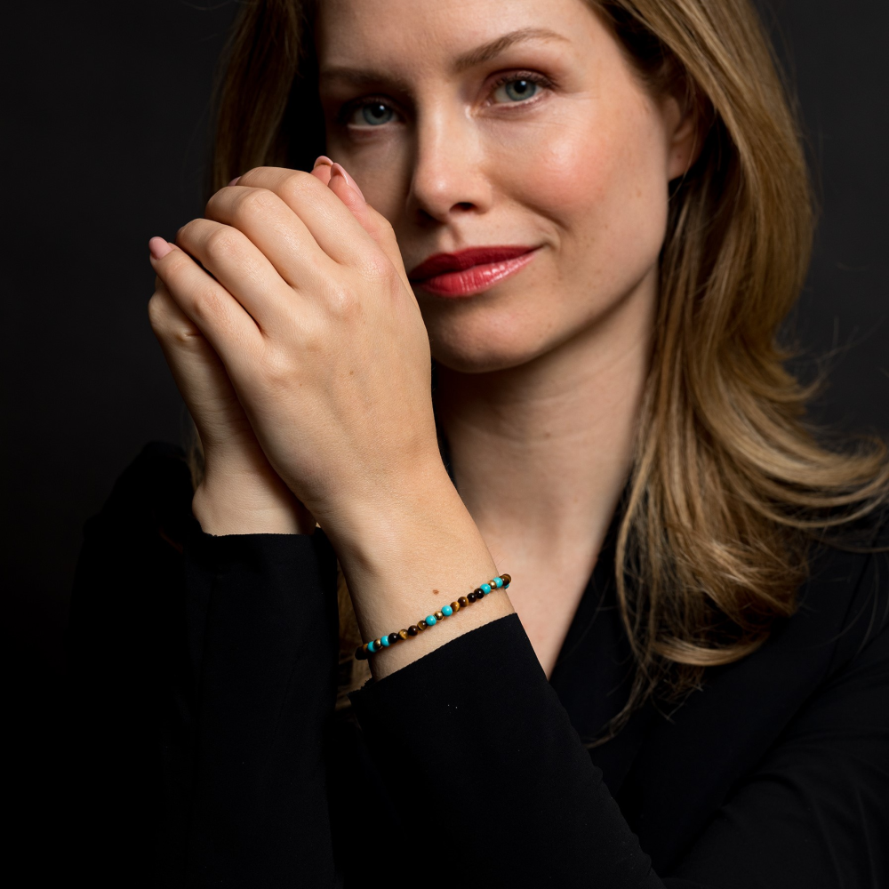 De Rebel & Rose Mix Tiger Turquoise RR-40063-G-S armband heeft een bruin juweelkleur en een breedte van 4 mm. Perfect voor een stijlvolle look. Draag het solo of combineer met andere armbanden voor een trendy mix. Ideaal voor elke gelegenheid!