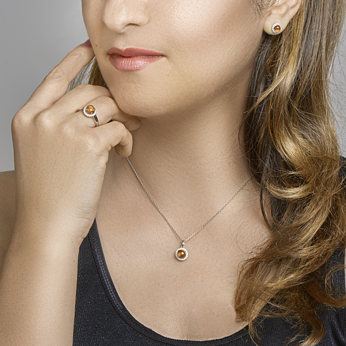 Gerhodineerd zilveren ring uitgevoerd met schitterende zirkonia en een citrien steen. De ring heeft een breedte van 9.5mm.