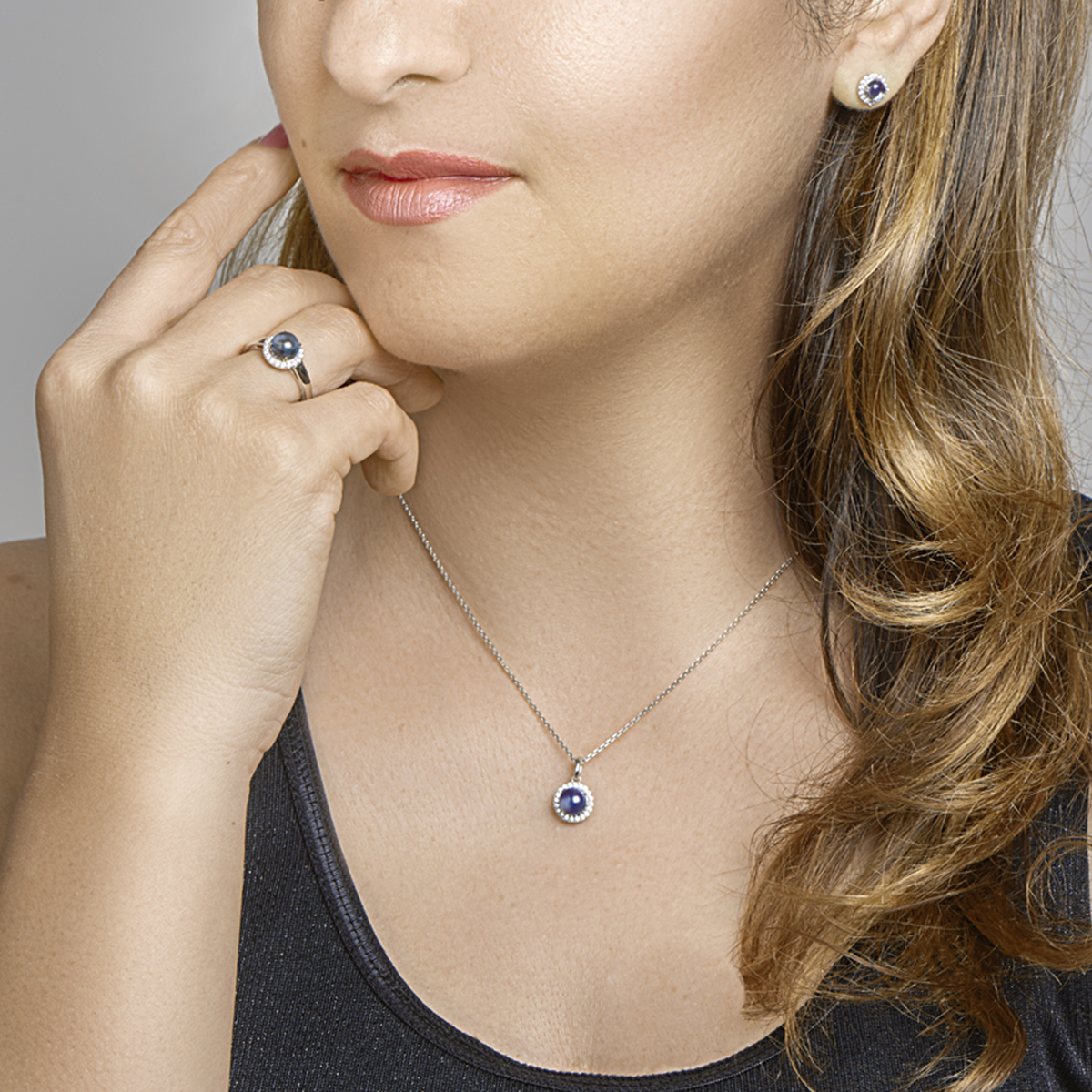 Gerhodineerd zilveren ring uitgevoerd met schitterende zirkonia en een London blue topaas steen. De ring heeft een breedte van 9.5mm.