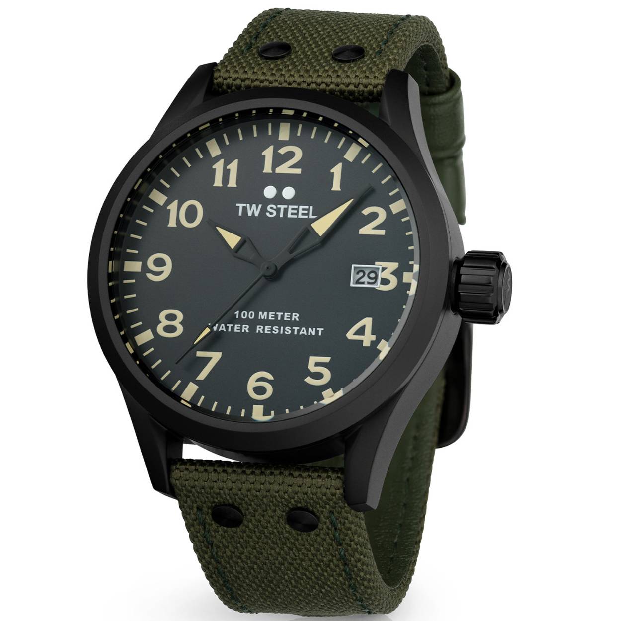 De TW Steel Volante TWVS102 is een stijlvolle, robuuste polshorloge. Met een analoge aanduiding, roestvrijstalen kast en grijze wijzerplaat, is hij zowel functioneel als modieus. De canvas groene band is 22 mm breed. Waterbestendig tot 10 ATM, ideaal voor dagelijks gebruik én speciaal voor avonturiers. Besteed aandacht aan kleurencombinaties bij het dragen en vermijd allergieën. Gewicht: 160 gram.
