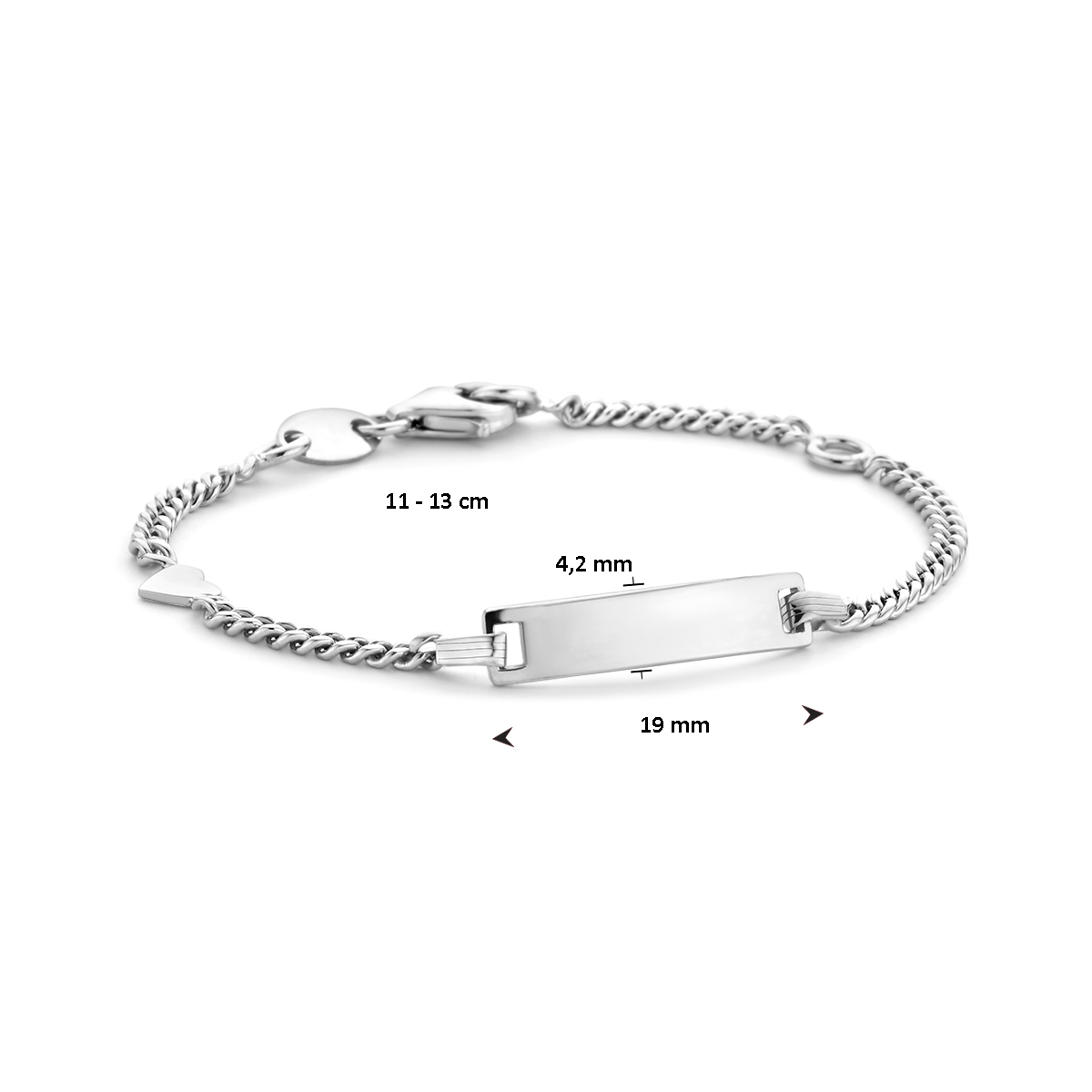 De Zilver gerhodineerd graveer armband is een verfijnd sieraad. Het heeft een grootte van 110 mm. Gemaakt van 925 sterling zilver en voorzien van een rhodiumlaag, straalt het elegantie uit. De armband is zilverkleurig en heeft een breedte van 4,2 mm. Perfect voor dagelijks gebruik of speciale gelegenheden.