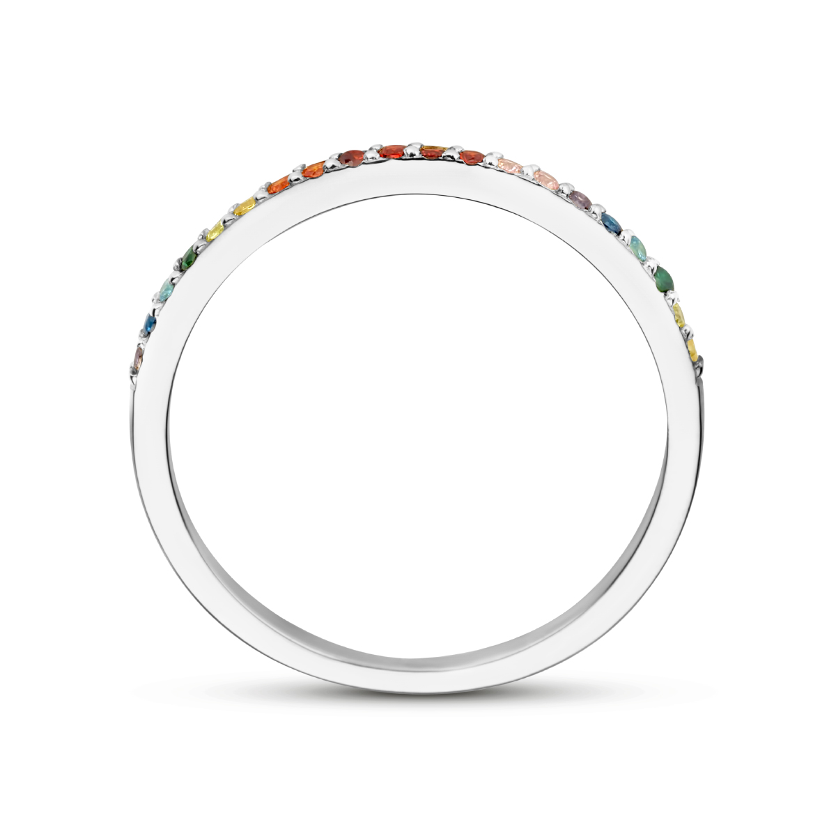 De Zilveren Aanschuifring uit de van Zaanen Huiscollectie is een verfijnde ring, gemaakt van rhodium-geplateerd materiaal met een briljant geslepen blauwe zirkonia. De ring heeft een breedte van 1,5 mm. Perfect te combineren met andere ringen voor een stijlvolle, gelaagde look.