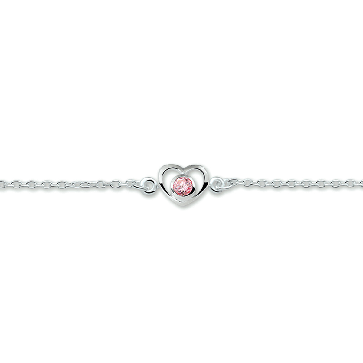 Deze Armband hart en zirkonia is een elegante, zilverkleurige armband van 13-15 cm, gemaakt van rodiumgeplateerd materiaal. Met een glanzende afwerking en briljante roze zirkonia, voegt het verfijning toe aan elke outfit. Draag het solo of in combinatie met andere sieraden voor een stijlvolle look. Breedte: 1,5 mm. Perfect voor dagelijks gebruik of speciale gelegenheden.
