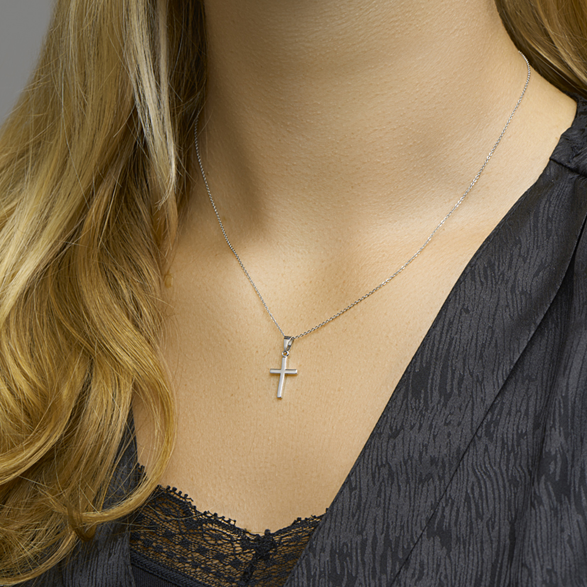 De Zilveren Hanger kruis, is een verfijnde charm. Gemaakt van rhodium-plated materiaal, heeft het een glanzende zilverkleurige afwerking. Met een hoogte van 15 mm en breedte van 10 mm, is het ideaal om aan een fijne ketting of armband te dragen voor een subtiele, elegante uitstraling.