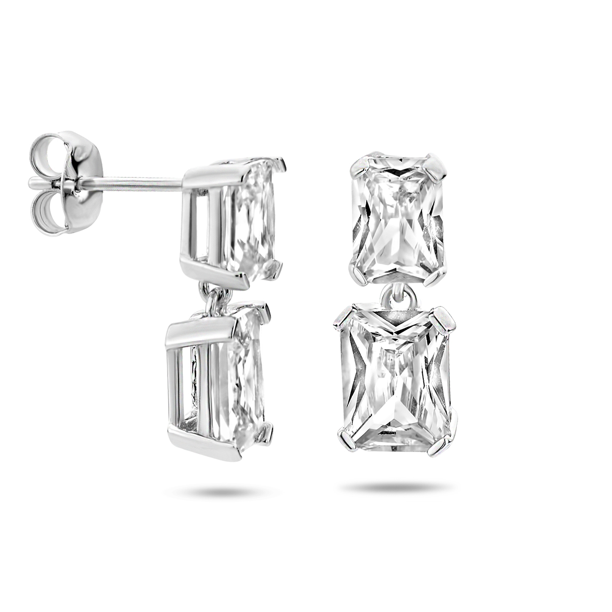 De Zilveren Oorhangers zijn prachtige stud oorbellen met een rhodium plating en schitterende zirkonia steen. Ze hebben een hoogte van 17 mm en een breedte van 6 mm. Perfect om elke elegante outfit compleet te maken, of het nu dagelijks is of voor een speciale gelegenheid.