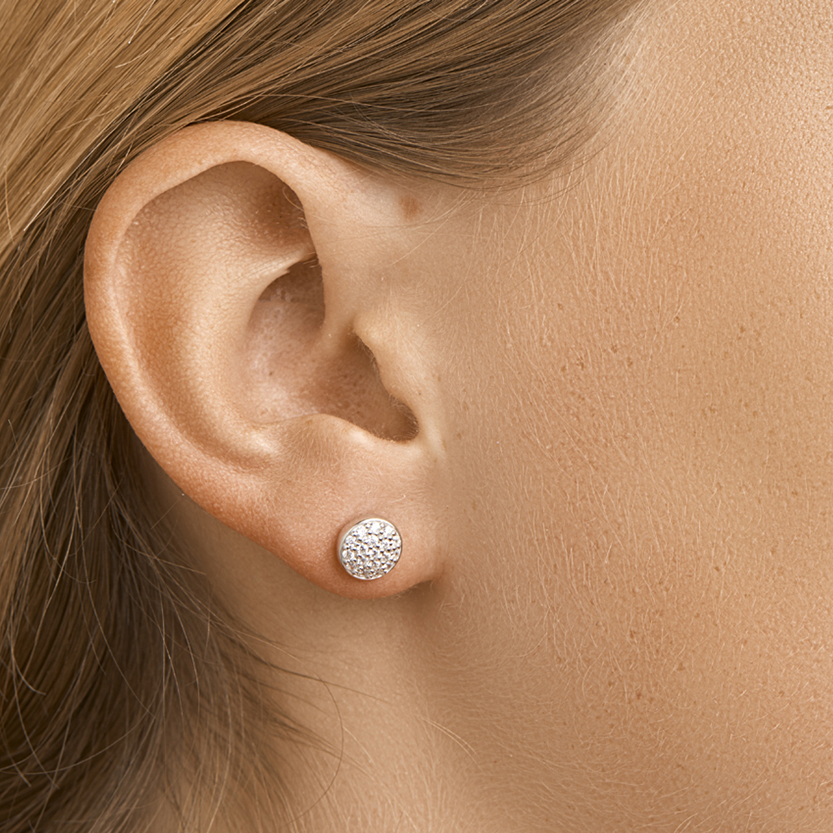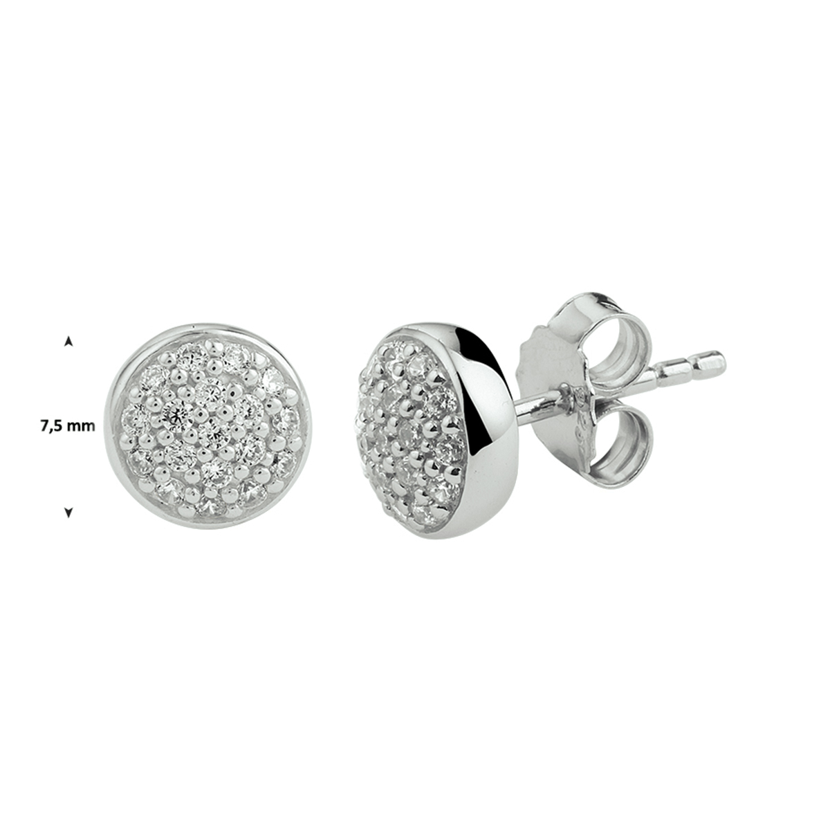 Gerhodineerd zilveren oorknoppen met een luxe pave van briljant geslepen zirkonia. De oorknoppen hebben een diameter van 7.5mm en een stevige pouchette sluiting.De oorknoppen zijn perfect te combineren met bijpassende sieraden uit onze collectie.