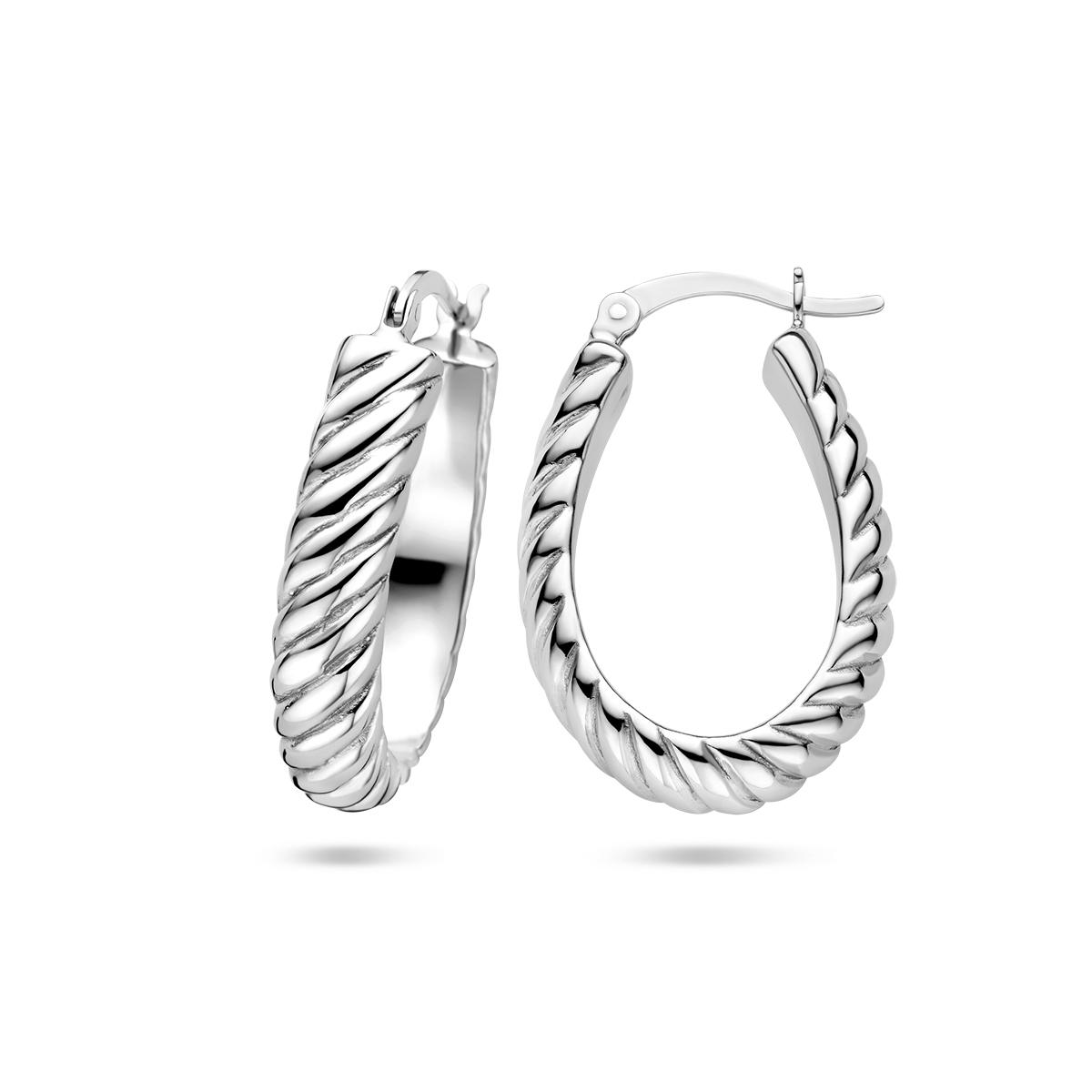 De Zilveren Oorringen gedraaid, modelnummer 1336901, zijn prachtige creolen van een onbekend merk, met de volgende kenmerken: gewicht van 4,6 gram, gemaakt van rodiumgeplateerd materiaal, en een glanzende, gedraaide vorm. Ze hebben een hoogte van 27,5 mm en een breedte van 5,5 mm. Perfect om elke dag te dragen of voor een speciale gelegenheid.