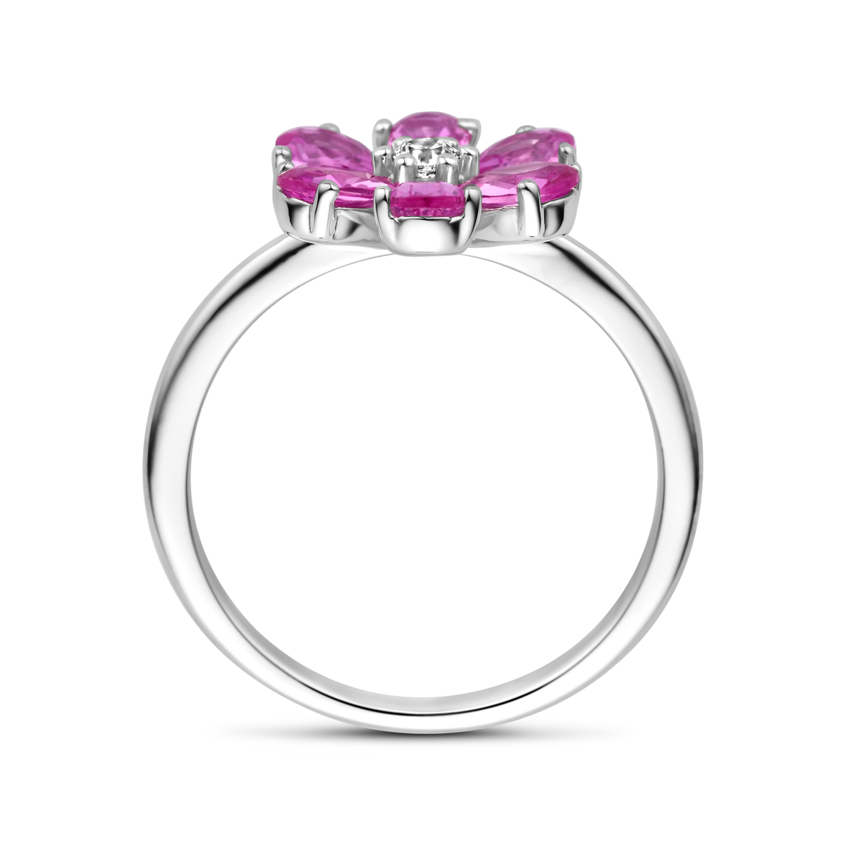 De Zilveren Ring heeft een bloemmotief met witte en roze zirkonia. Met een rhodium-plated afwerking is deze glanzende ring maat 52 perfect voor elegante gelegenheden. Draag het als een opvallend sieraad bij een avondjurk of casual chic outfit. Ideaal voor vrouwen die van verfijnde elegantie houden.